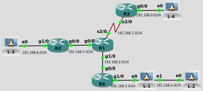 R2#show ip route Codes: C - connected, S - static, R - RIP, M - mobile, B - BGP D - EIGRP, EX - EIGRP external, O - OSPF, IA - OSPF inter area N1 - OSPF NSSA external type 1, N2 - OSPF NSSA external type 2 E1 - OSPF external type 1, E2 - OSPF external type 2 i - IS-IS, su - IS-IS summary, L1 - IS-IS level-1, L2 - IS-IS level-2 ia - IS-IS inter area, * - candidate default, U - per-user static route o - ODR, P - periodic downloaded static route Gateway of last resort is not set O 192.168.4.0/24 [110/4] via 192.168.5.1, 00:03:34, GigabitEthernet0/0 C 192.168.5.0/24 is directly connected, GigabitEthernet0/0 C 192.168.6.0/24 is directly connected, GigabitEthernet1/0 O 192.168.0.0/24 [110/66] via 192.168.5.1, 02:40:04, GigabitEthernet0/0 O 192.168.1.0/24 [110/65] via 192.168.5.1, 02:45:19, GigabitEthernet0/0 O 192.168.2.0/24 [110/2] via 192.168.5.1, 02:45:19, GigabitEthernet0/0 O 192.168.3.0/24 [110/3] via 192.168.5.1, 02:45:19, GigabitEthernet0/0 R2#show ip protocols Routing Protocol is "ospf 1" Outgoing update filter list for all interfaces is not set Incoming update filter list for all interfaces is not set Router ID 192.168.6.2 Number of areas in this router is 1. 1 normal 0 stub 0 nssa Maximum path: 4 Routing for Networks: 192.168.5.0 255.255.255.0 area 0 192.168.6.0 255.255.255.0 area 0 Reference bandwidth unit is 1000 mbps Routing Information Sources: Gateway Distance Last Update 192.168.1.3 110 02:37:21 192.168.5.1 110 02:42:36 192.168.4.1 110 00:00:51 192.168.3.4 110 02:42:36 Distance: (default is 110) R2#show ip ospf interface GigabitEthernet0/0 GigabitEthernet0/0 is up, line protocol is up Internet Address 192.168.5.2/24, Area 0 Process ID 1, Router ID 192.168.6.2, Network Type BROADCAST, Cost: 1 Transmit Delay is 1 sec, State BDR, Priority 1 Designated Router (ID) 192.168.5.1, Interface address 192.168.5.1 Backup Designated router (ID) 192.168.6.2, Interface address 192.168.5.2 Timer intervals configured, Hello 10, Dead 40, Wait 40, Retransmit 5 oob-resync timeout 40 Hello due in 00:00:01 Supports Link-local Signaling (LLS) Cisco NSF helper support enabled IETF NSF helper support enabled Index 1/1, flood queue length 0 Next 0x0(0)/0x0(0) Last flood scan length is 1, maximum is 1 Last flood scan time is 0 msec, maximum is 4 msec Neighbor Count is 1, Adjacent neighbor count is 1 Adjacent with neighbor 192.168.5.1 (Designated Router) Suppress hello for 0 neighbor(s) R2#show ip ospf neighbor Neighbor ID Pri State Dead Time Address Interface 192.168.5.1 1 FULL/DR 00:00:37 192.168.5.1 GigabitEthernet0/0 R2#show ip ospf database router OSPF Router with ID (192.168.6.2) (Process ID 1) Router Link States (Area 0) LS age: 1473 Options: (No TOS-capability, DC) LS Type: Router Links Link State ID: 192.168.1.3 Advertising Router: 192.168.1.3 LS Seq Number: 80000009 Checksum: 0x1AE5 Length: 60 Number of Links: 3 Link connected to: another Router (point-to-point) (Link ID) Neighboring Router ID: 192.168.5.1 (Link Data) Router Interface address: 192.168.1.3 Number of TOS metrics: 0 TOS 0 Metrics: 64 Link connected to: a Stub Network (Link ID) Network/subnet number: 192.168.1.0 (Link Data) Network Mask: 255.255.255.0 Number of TOS metrics: 0 TOS 0 Metrics: 64 Link connected to: a Stub Network (Link ID) Network/subnet number: 192.168.0.0 (Link Data) Network Mask: 255.255.255.0 Number of TOS metrics: 0 TOS 0 Metrics: 1 LS age: 39 Options: (No TOS-capability, DC) LS Type: Router Links Link State ID: 192.168.3.4 Advertising Router: 192.168.3.4 LS Seq Number: 80000008 Checksum: 0x3348 Length: 48 Number of Links: 2 Link connected to: a Transit Network (Link ID) Designated Router address: 192.168.3.4 (Link Data) Router Interface address: 192.168.3.4 Number of TOS metrics: 0 TOS 0 Metrics: 1 Link connected to: a Transit Network (Link ID) Designated Router address: 192.168.2.4 (Link Data) Router Interface address: 192.168.2.4 Number of TOS metrics: 0 TOS 0 Metrics: 1 LS age: 114 Options: (No TOS-capability, No DC) LS Type: Router Links Link State ID: 192.168.4.1 Advertising Router: 192.168.4.1 LS Seq Number: 80000011 Checksum: 0x78FF Length: 60 Number of Links: 3 Link connected to: a Transit Network (Link ID) Designated Router address: 192.168.3.4 (Link Data) Router Interface address: 192.168.3.1 Number of TOS metrics: 0 TOS 0 Metrics: 1 Link connected to: a Stub Network (Link ID) Network/subnet number: 192.168.4.0 (Link Data) Network Mask: 255.255.255.0 Number of TOS metrics: 0 TOS 0 Metrics: 1 Link connected to: a Stub Network (Link ID) Network/subnet number: 127.0.0.1 (Link Data) Network Mask: 255.255.255.255 Number of TOS metrics: 0 TOS 0 Metrics: 1 LS age: 1856 Options: (No TOS-capability, DC) LS Type: Router Links Link State ID: 192.168.5.1 Advertising Router: 192.168.5.1 LS Seq Number: 80000007 Checksum: 0x435E Length: 72 Number of Links: 4 Link connected to: another Router (point-to-point) (Link ID) Neighboring Router ID: 192.168.1.3 (Link Data) Router Interface address: 192.168.1.1 Number of TOS metrics: 0 TOS 0 Metrics: 64 Link connected to: a Stub Network (Link ID) Network/subnet number: 192.168.1.0 (Link Data) Network Mask: 255.255.255.0 Number of TOS metrics: 0 TOS 0 Metrics: 64 Link connected to: a Transit Network (Link ID) Designated Router address: 192.168.2.4 (Link Data) Router Interface address: 192.168.2.1 Number of TOS metrics: 0 TOS 0 Metrics: 1 Link connected to: a Transit Network (Link ID) Designated Router address: 192.168.5.1 (Link Data) Router Interface address: 192.168.5.1 Number of TOS metrics: 0 TOS 0 Metrics: 1 LS age: 1749 Options: (No TOS-capability, DC) LS Type: Router Links Link State ID: 192.168.6.2 Advertising Router: 192.168.6.2 LS Seq Number: 80000007 Checksum: 0xA544 Length: 48 Number of Links: 2 Link connected to: a Stub Network (Link ID) Network/subnet number: 192.168.6.0 (Link Data) Network Mask: 255.255.255.0 Number of TOS metrics: 0 TOS 0 Metrics: 1 Link connected to: a Transit Network (Link ID) Designated Router address: 192.168.5.1 (Link Data) Router Interface a