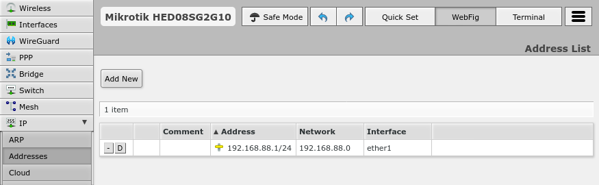 W domyślnej konfiguracji część sprzętu firmy Mikrotik ma ustawiony adres IP