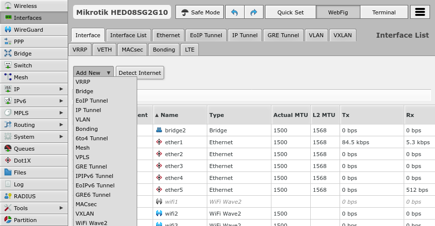 RouterOS ma dwie implementacje sieci bezprzewodowych: wireless